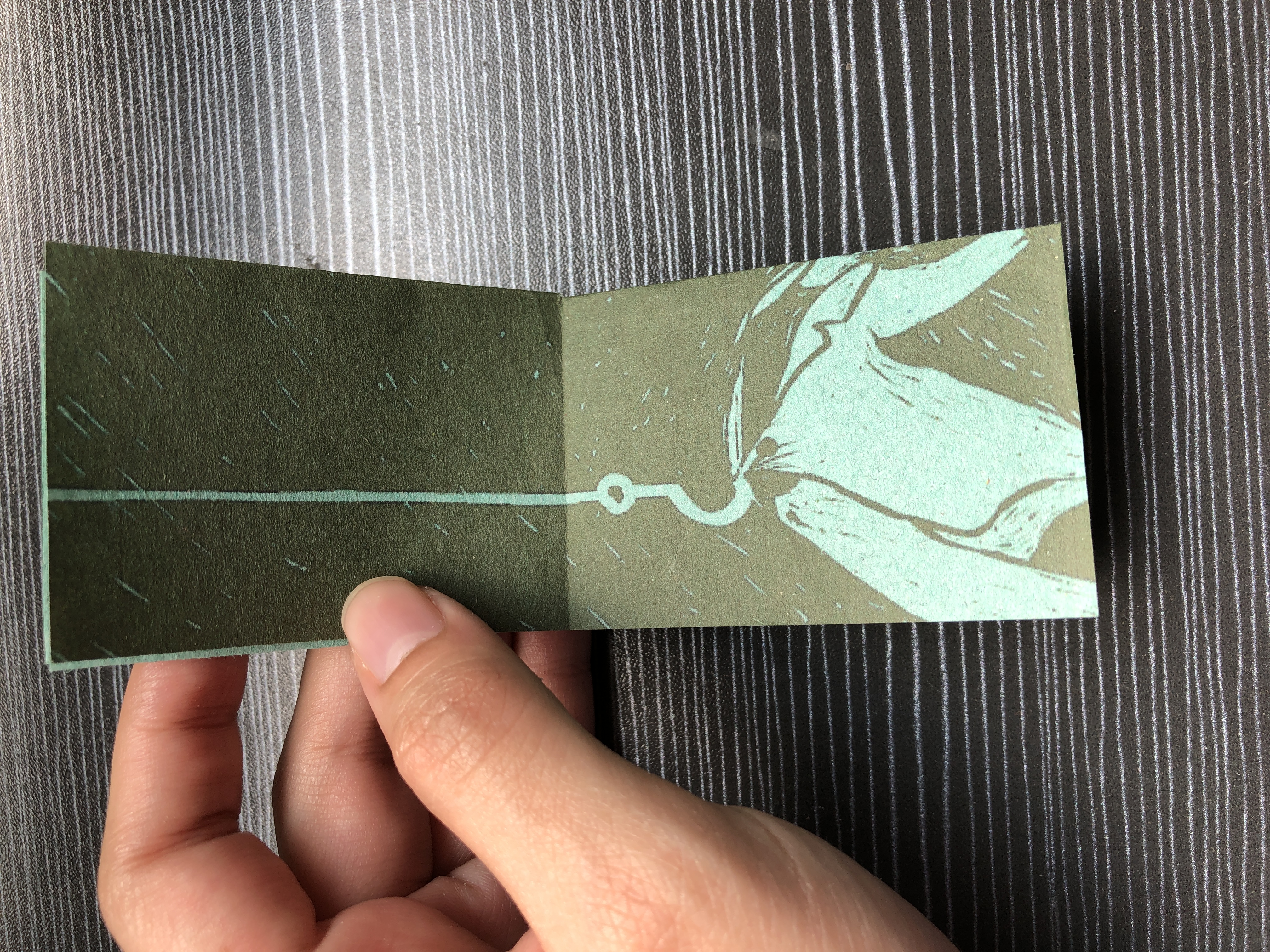 Created as the final project in a character design course, this zine explores visual storytelling. The goal was to experiment with treatments and techniques. I explored Zine folding techniques, a linocut illustration style and AR animation.
