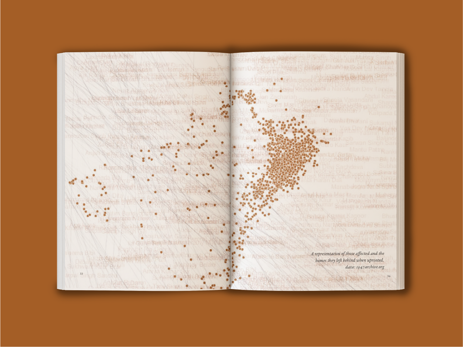 When data of this magnitude exists, it is easy to lose individual stories amidst numbers. I used the 1947 Archive’s data set to visualise a graphic that contains the name of every person that was recorded to be displaced during that time. This publication aims to honour a generation that lived two lives, one that they had always known, and one that was forced on them. They are more than just stories, more than just the demographic they were regarded as at the time. They were human beings. Ones that had to learn to accept fate as it came.