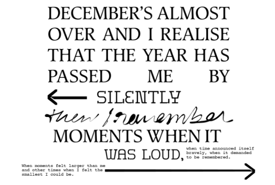 An odd jumble of thoughts, memories and high sentence laid out in A4 size compositions. Explorations in layouts, type, textures and words.