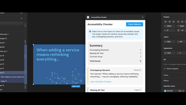 Accessibility Checker: Making inclusive design effortless and integrated. The plugin brings WCAG compliance testing directly into designers' workflows.